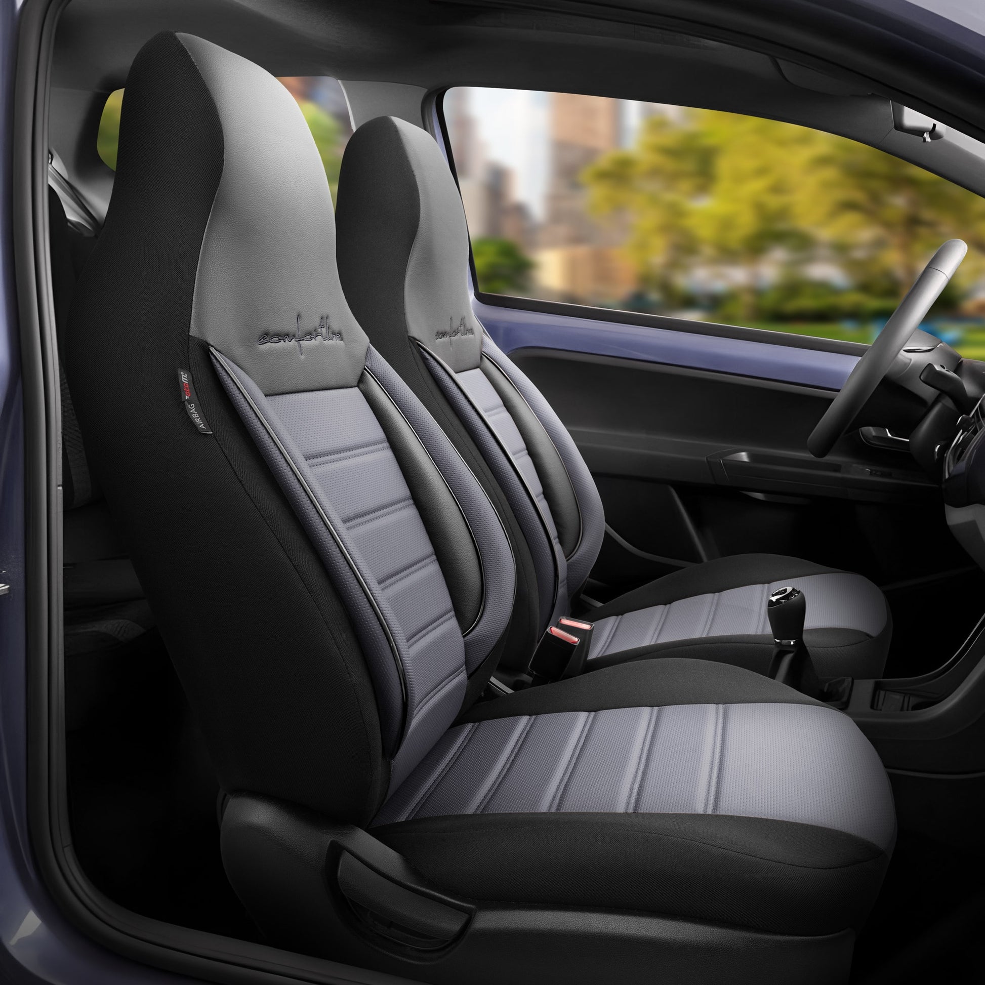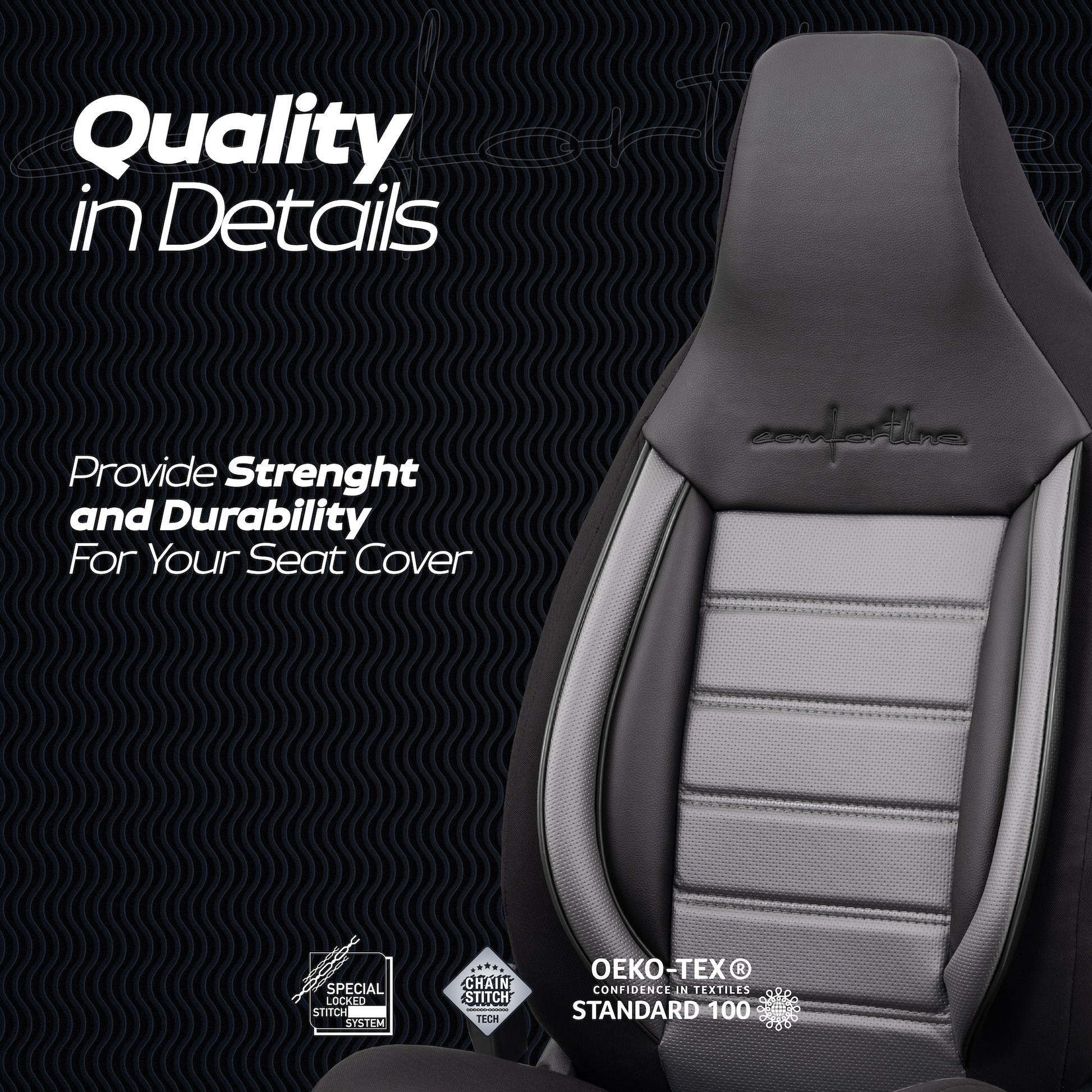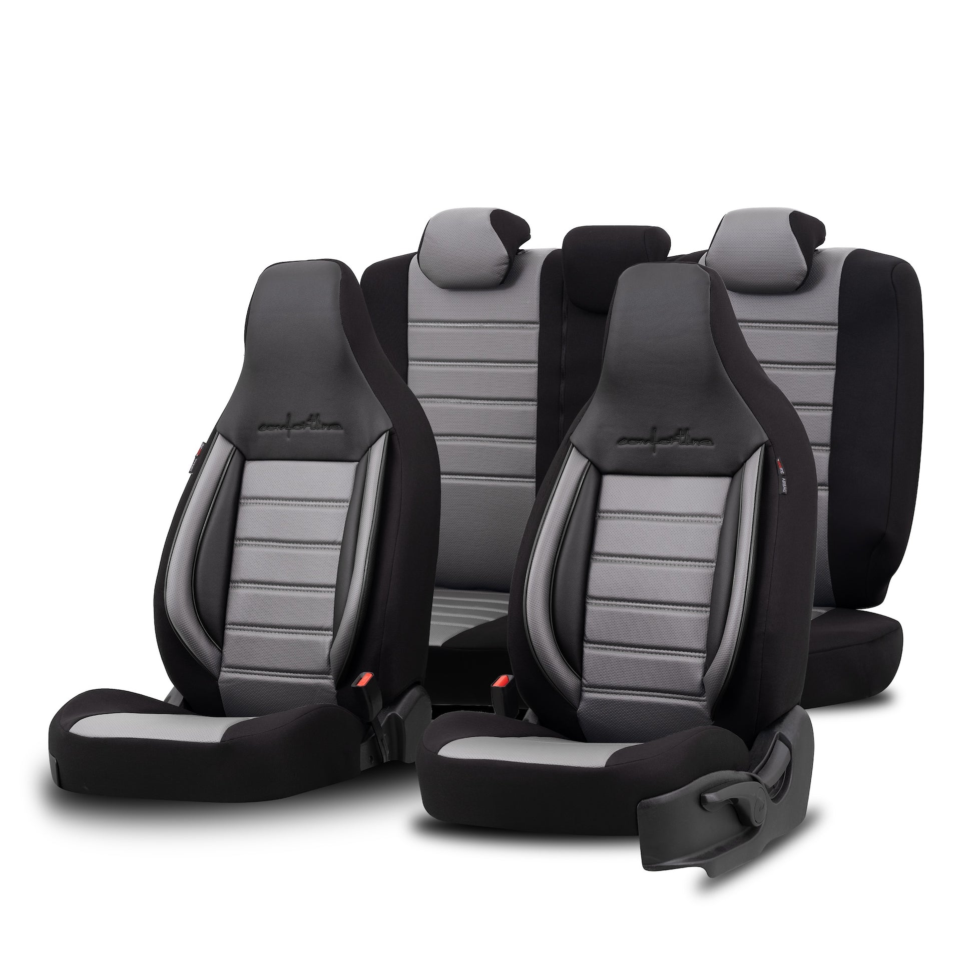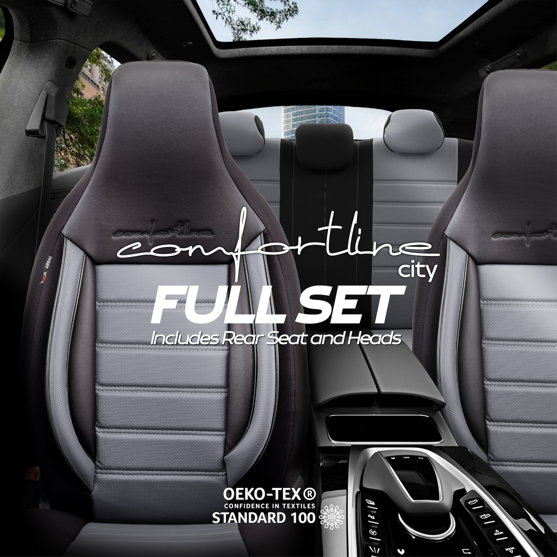 Sada Čalounění Comfortline City – Černá/Šedá, s Eko kůží, pro Přední a Zadní Sedačky (Pro malé městské vozy)