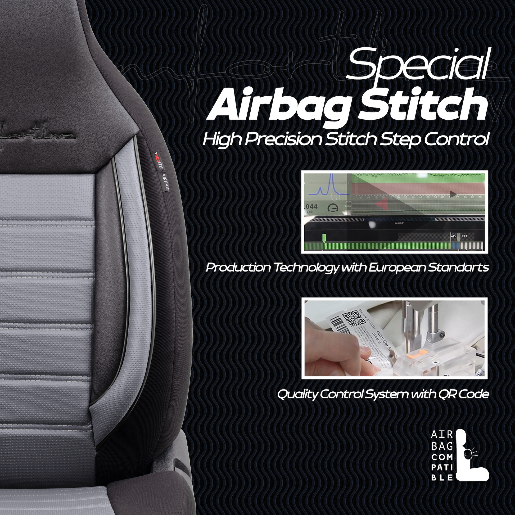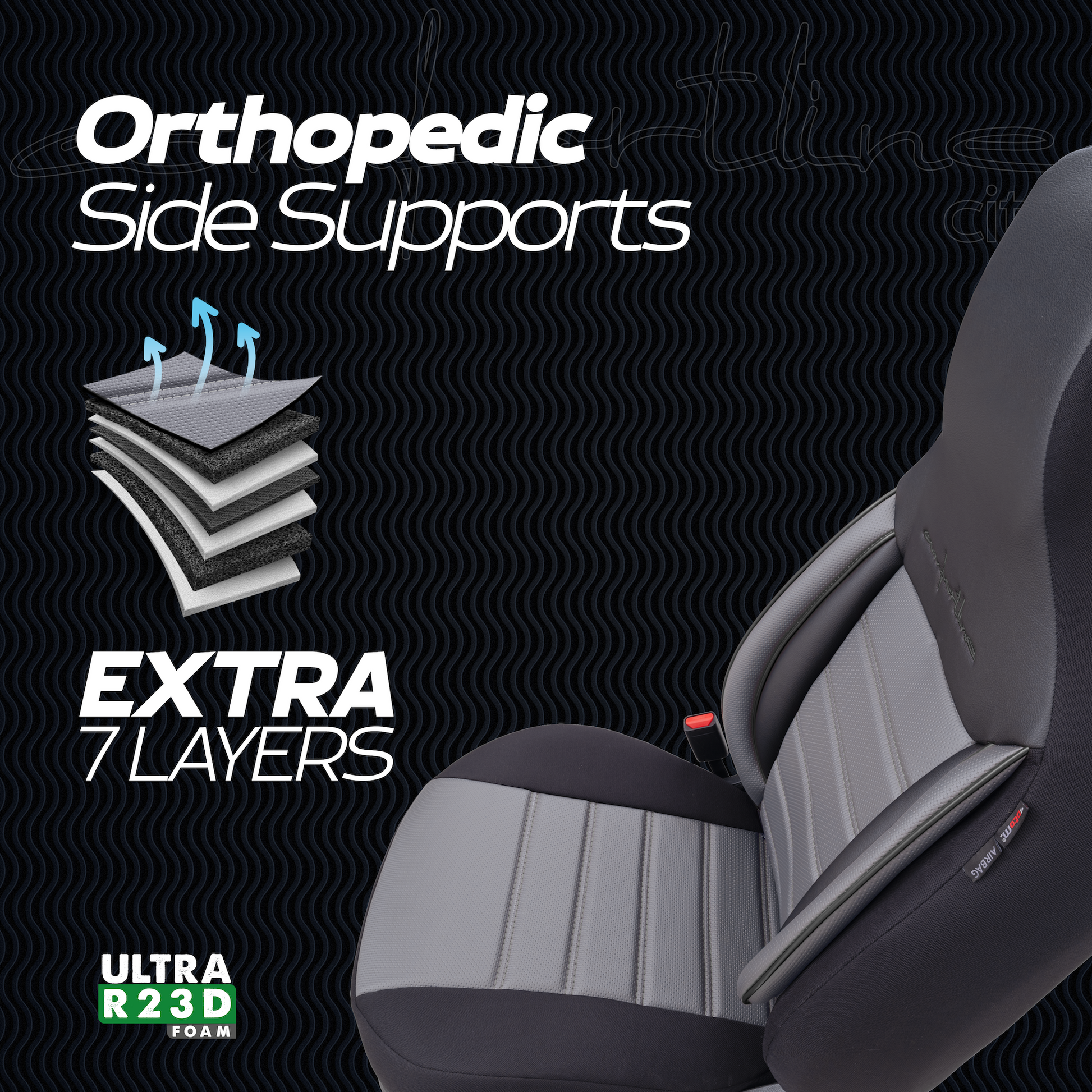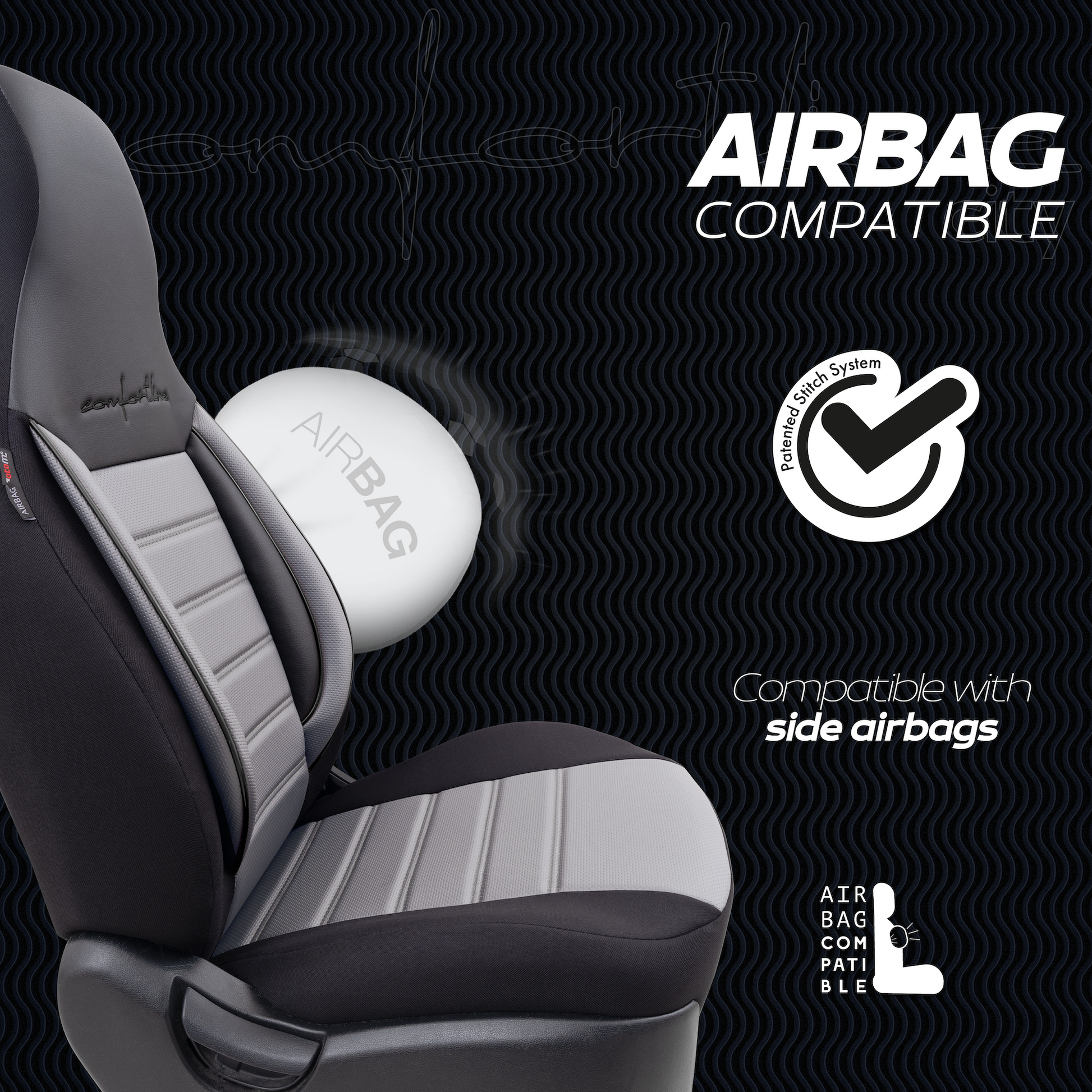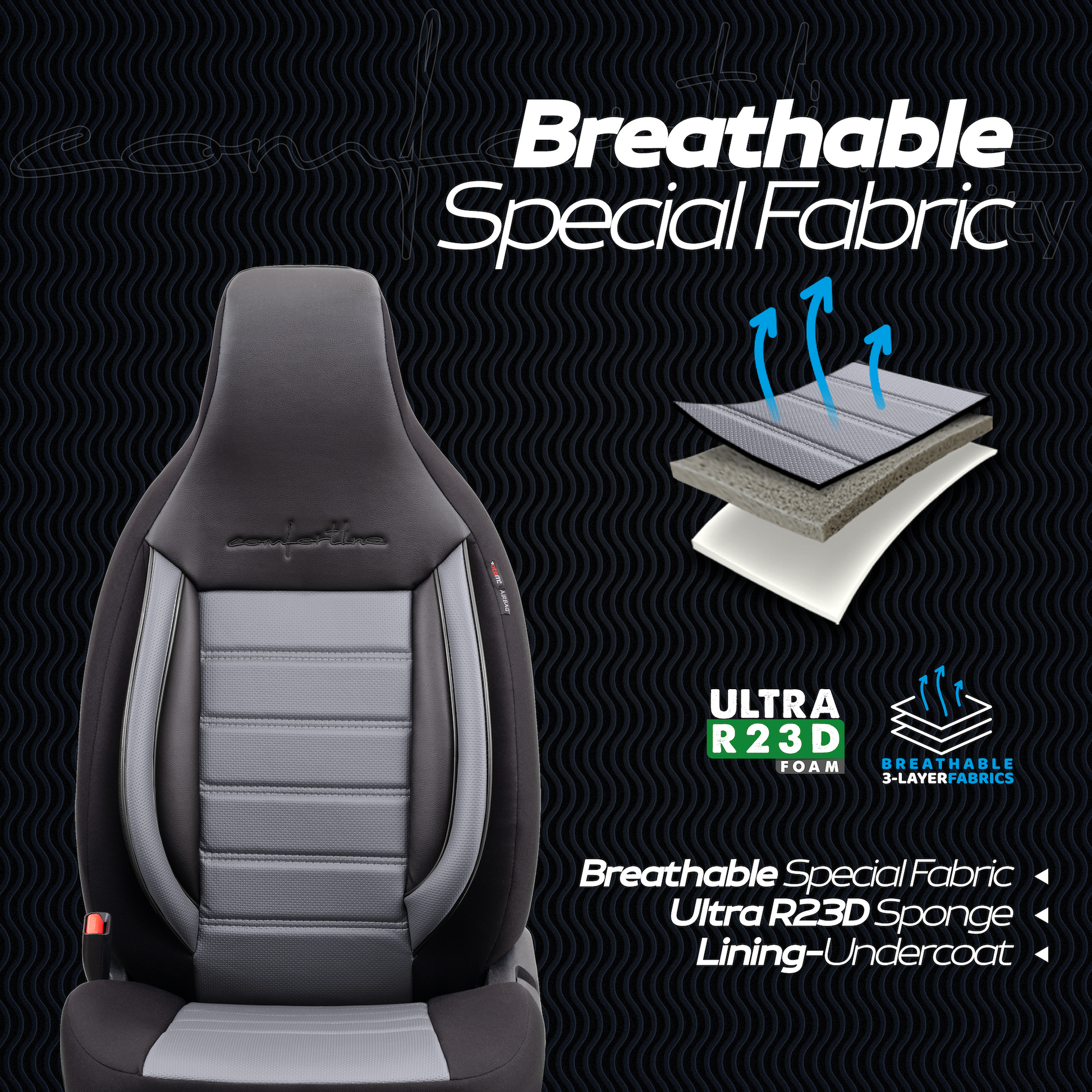 Sada Čalounění Comfortline City – Černá/Šedá, s Eko kůží, pro Přední a Zadní Sedačky (Pro malé městské vozy)