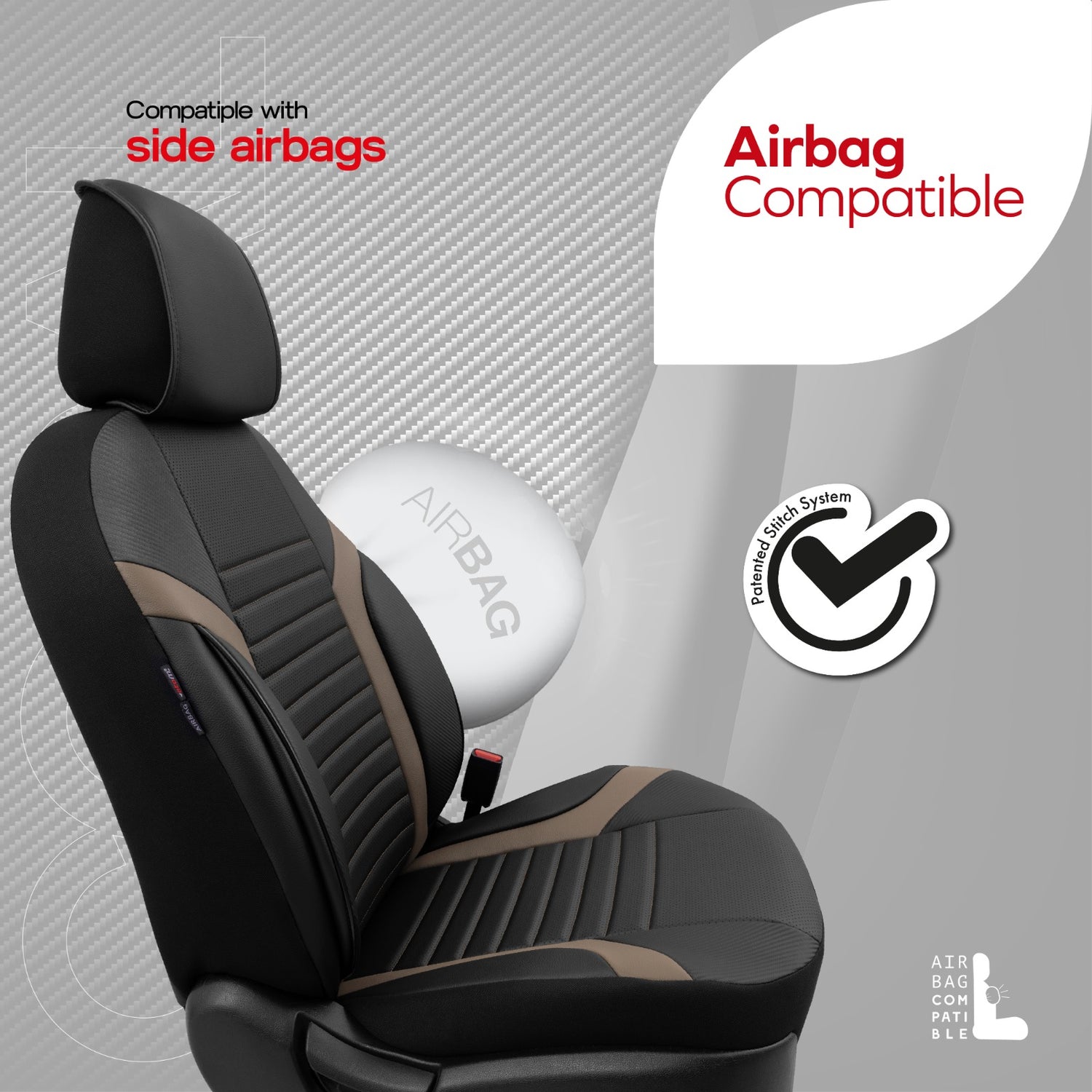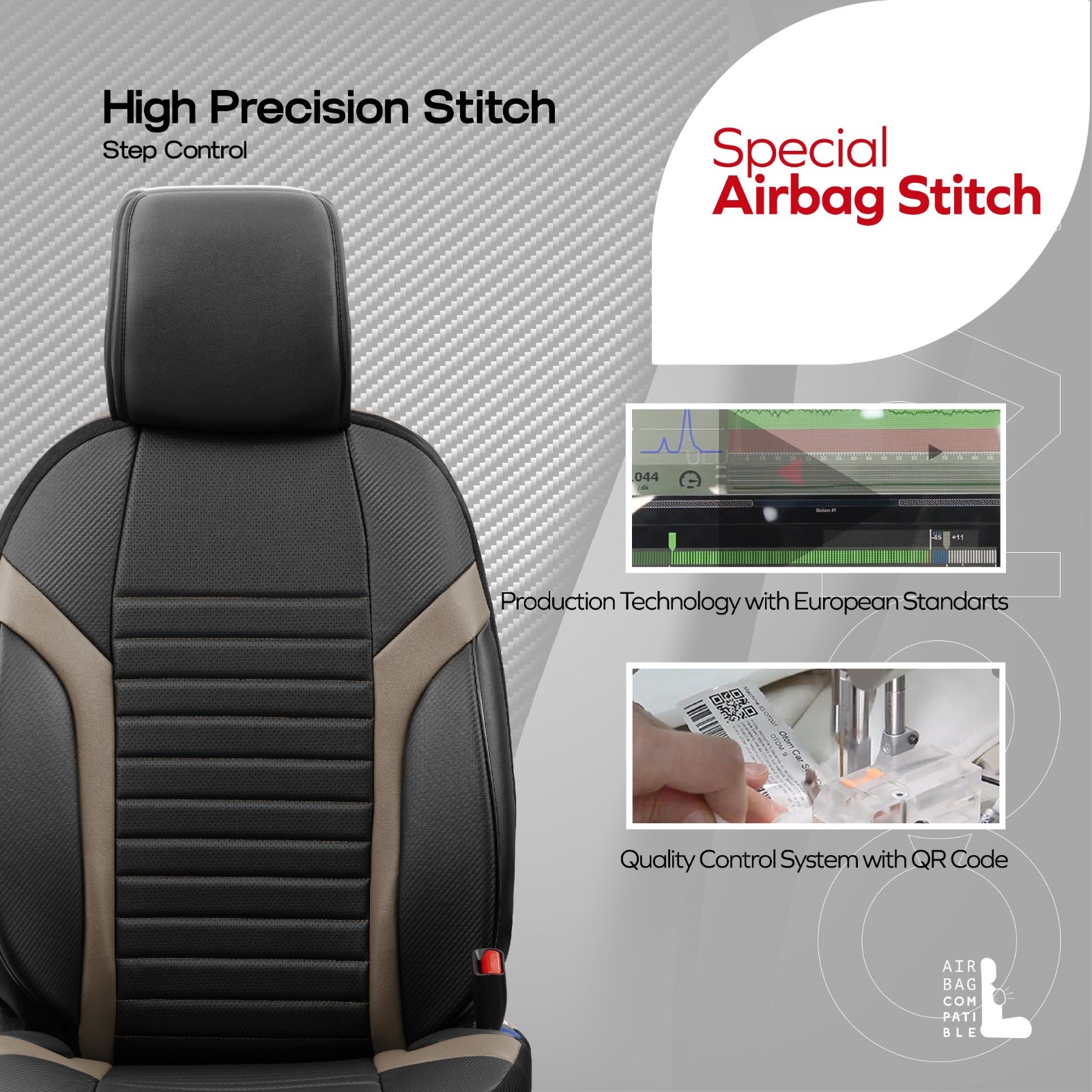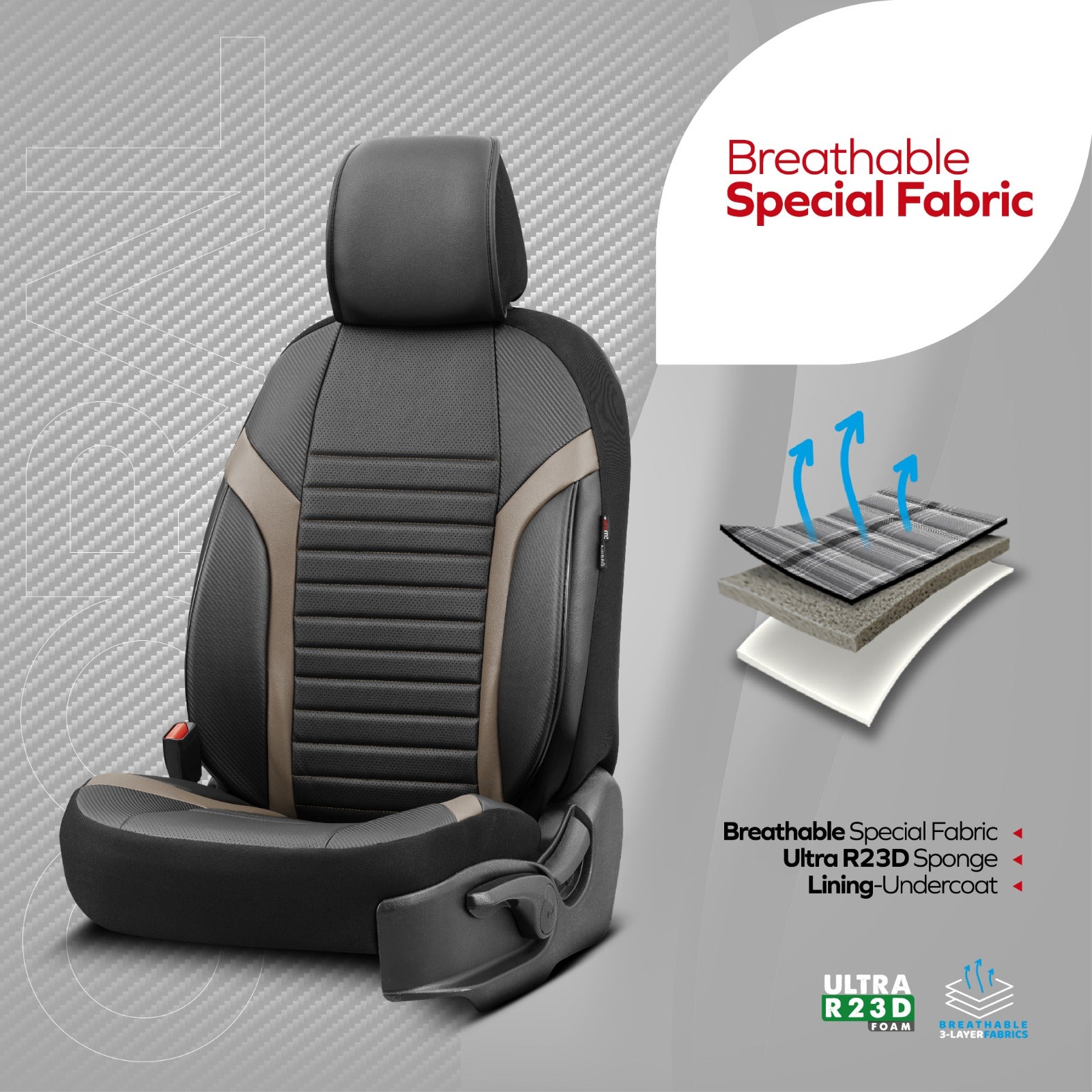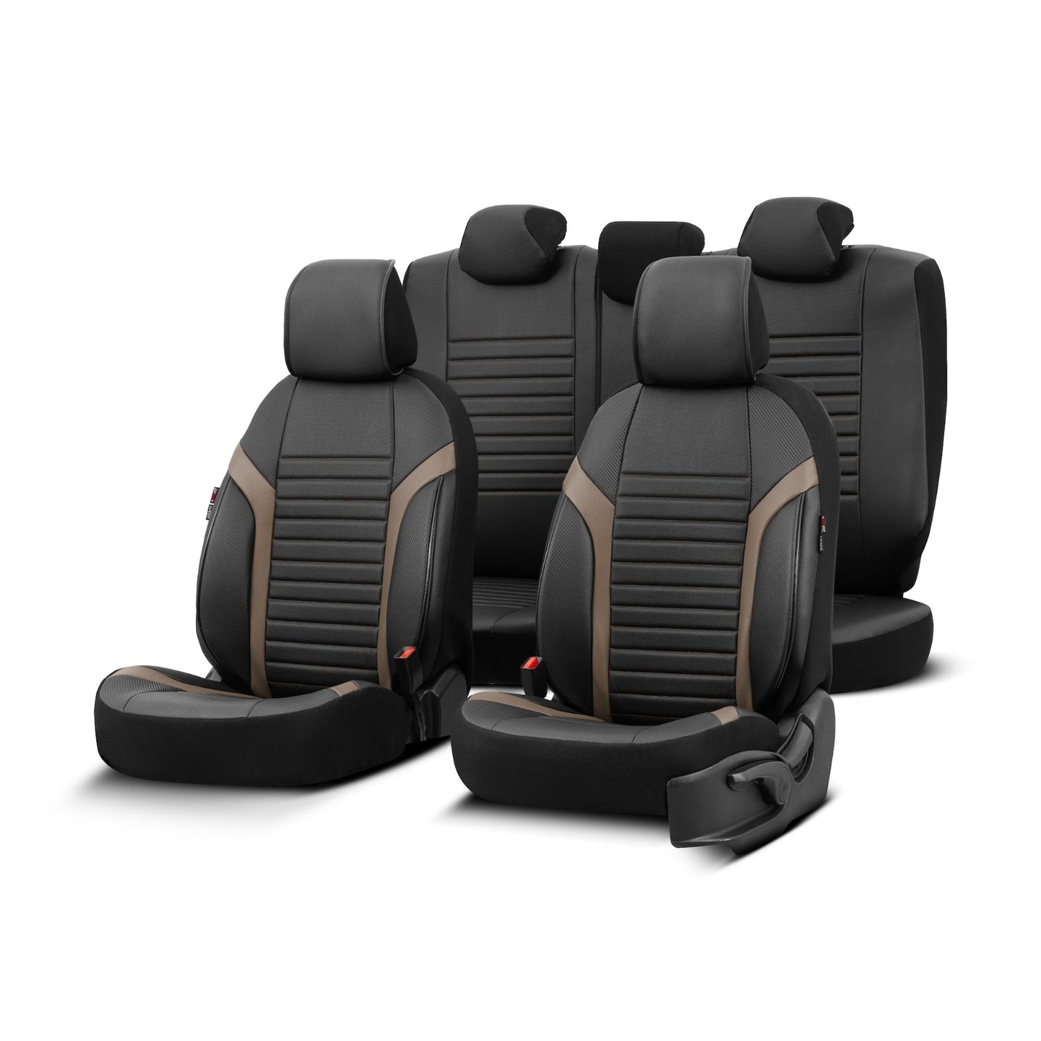 Sada luxusního čalounění Coral – Prodyšná eko kůže, černá/béžová, pro přední a zadní sedadla