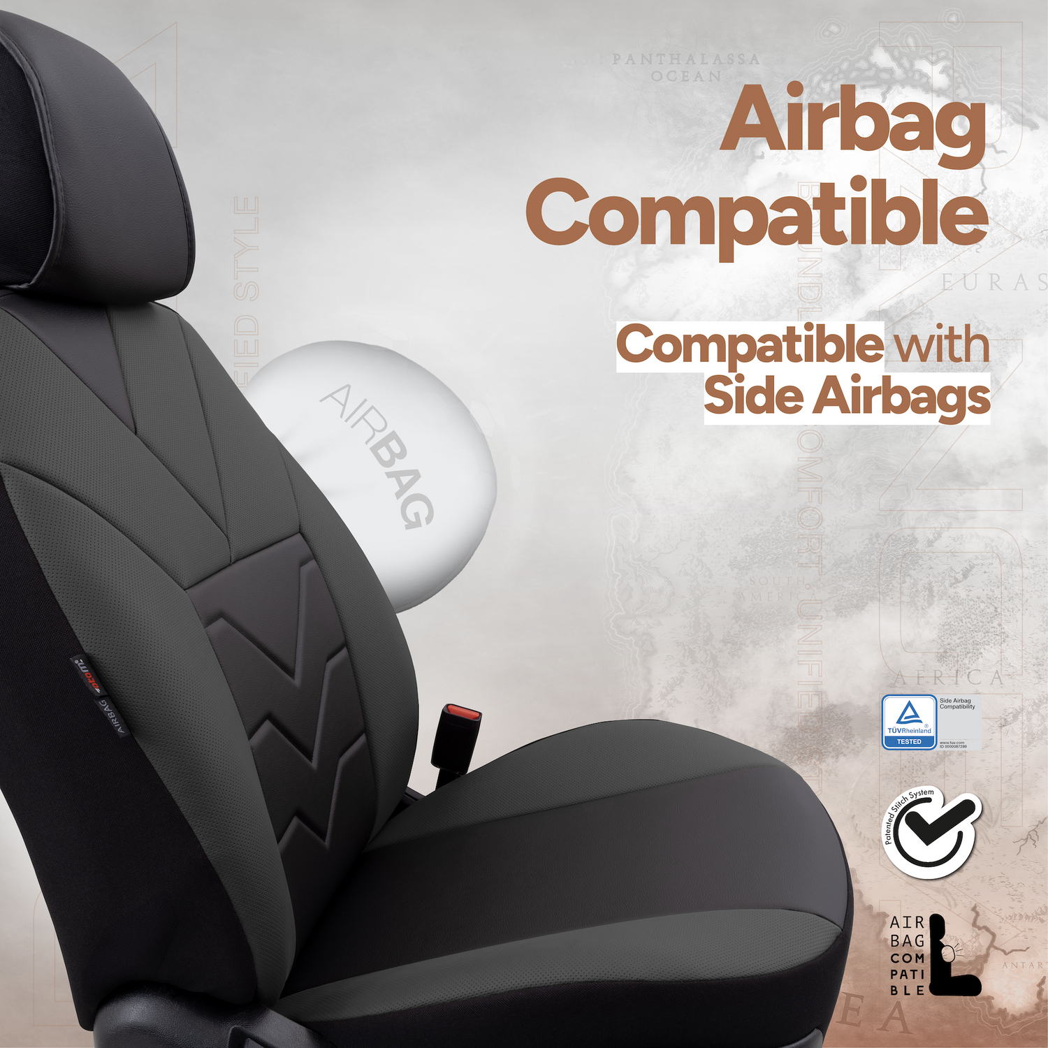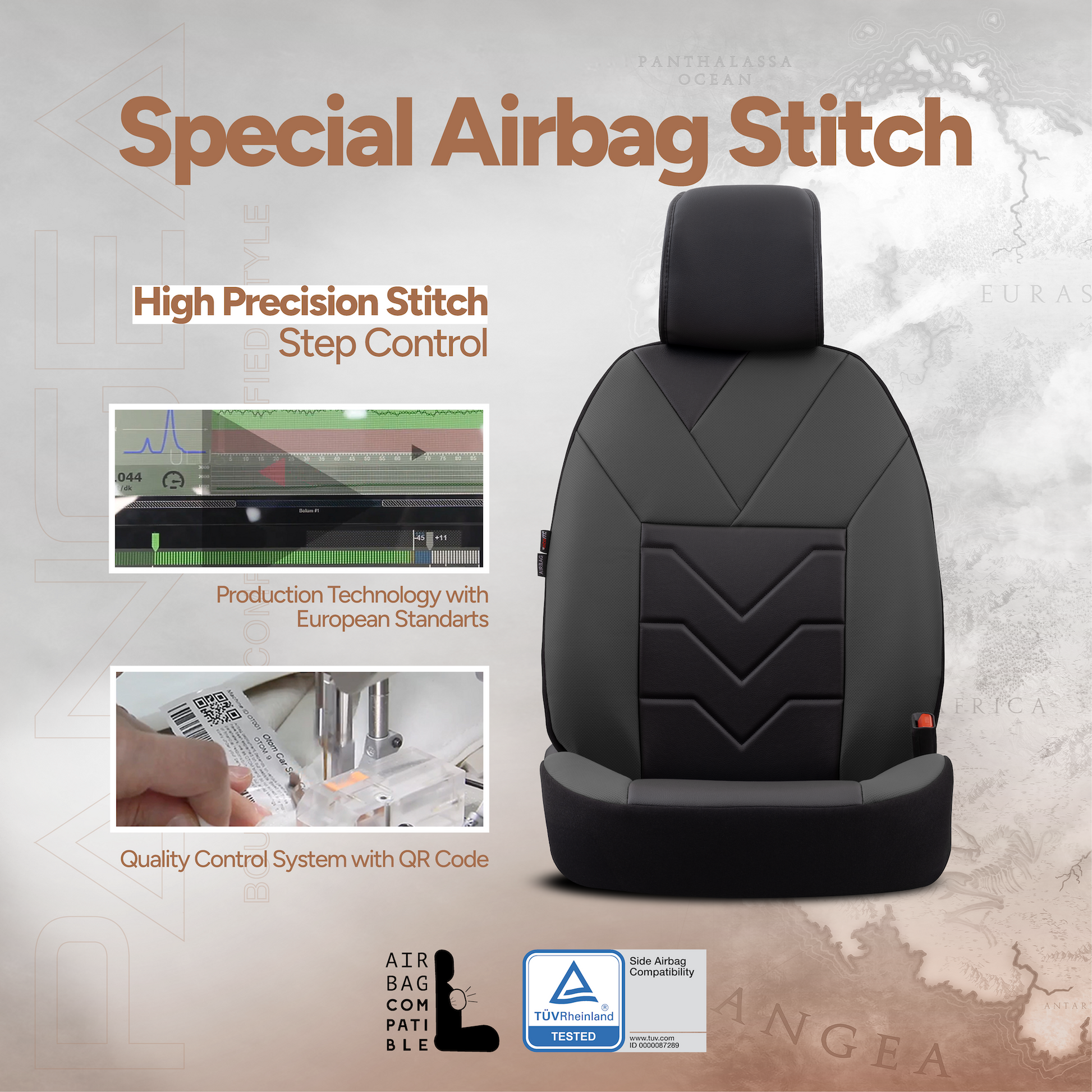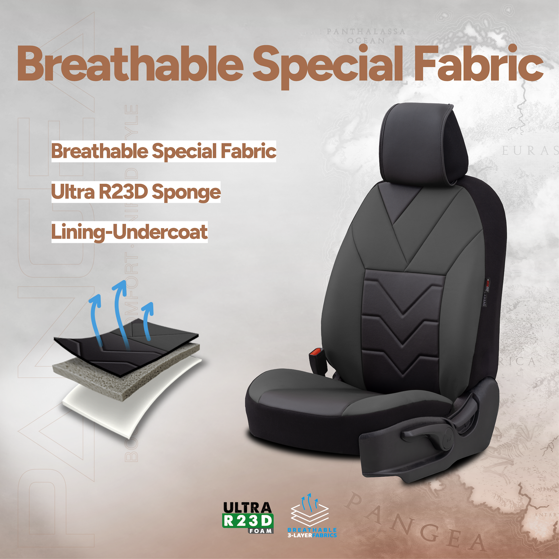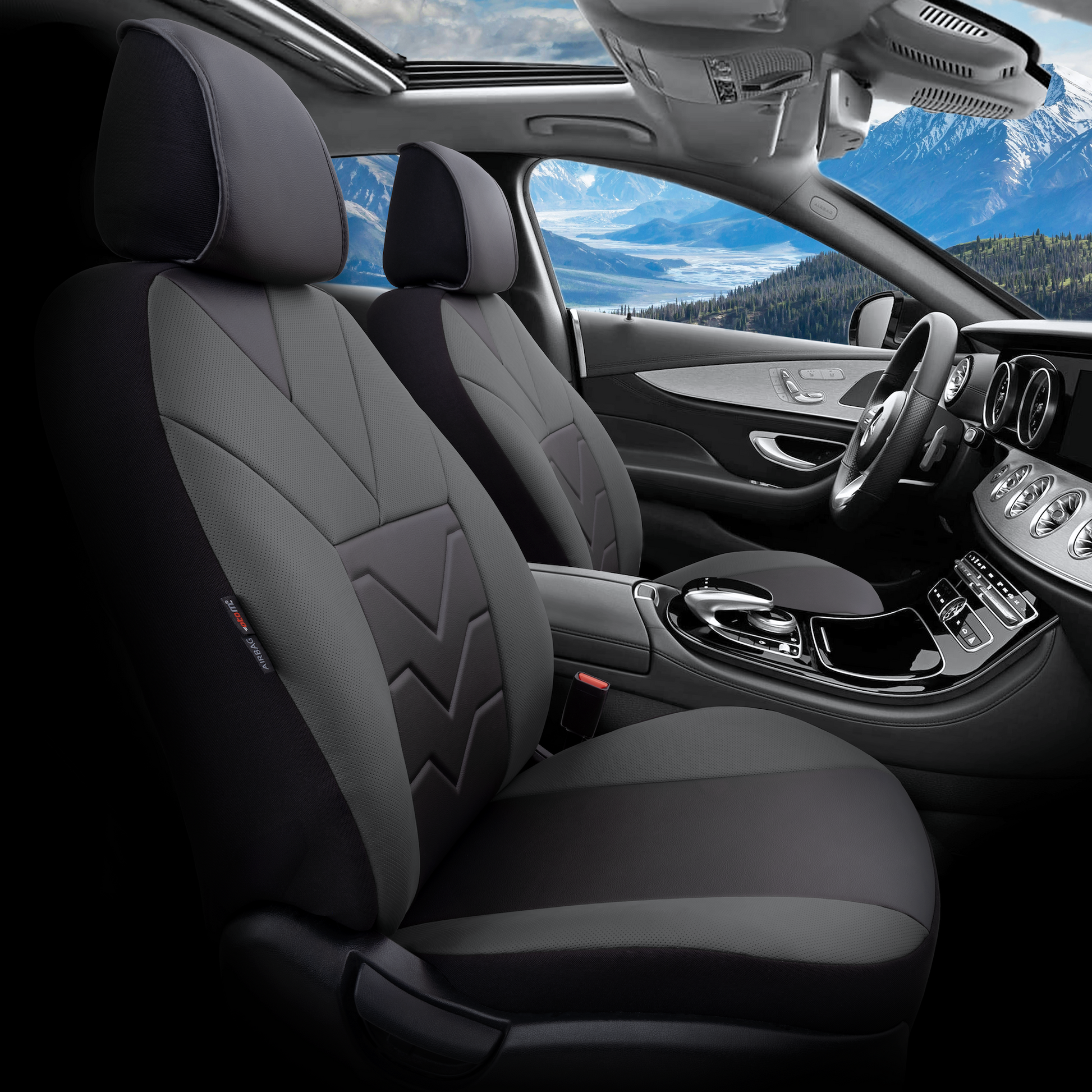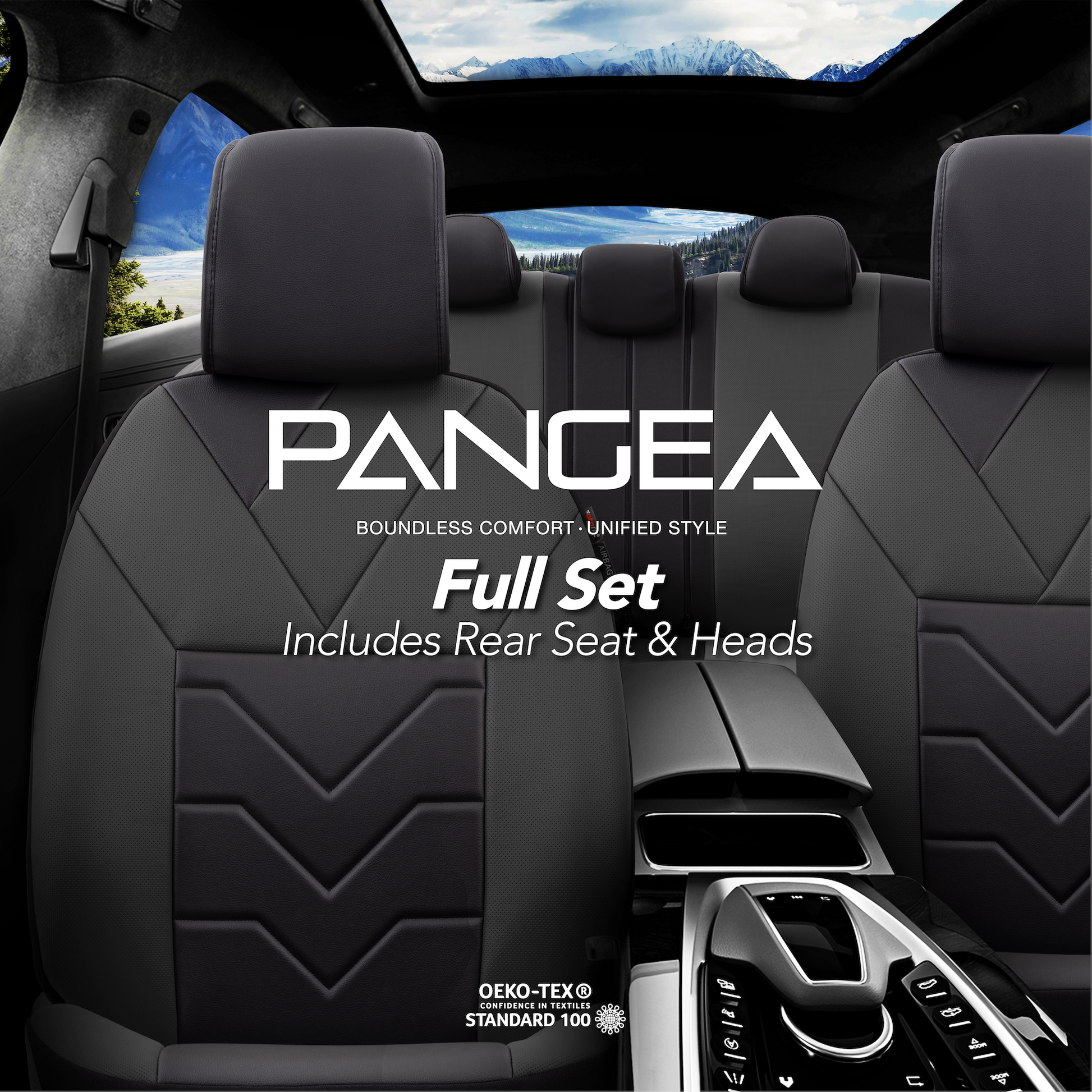 Sada luxusního čalounění Pangea – Ekologická kůže, černá/šedá, pro přední a zadní sedadla