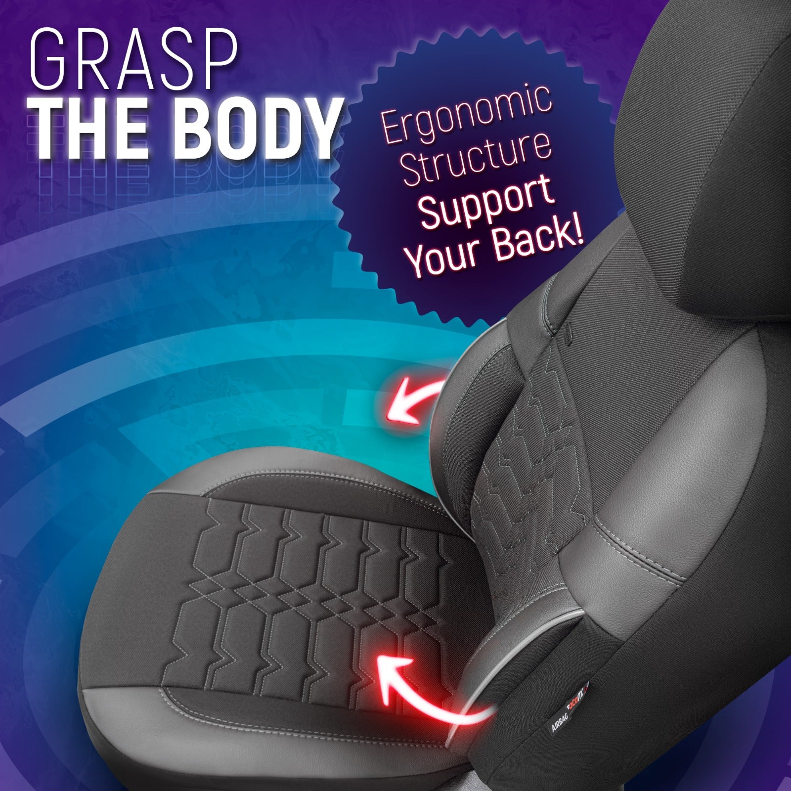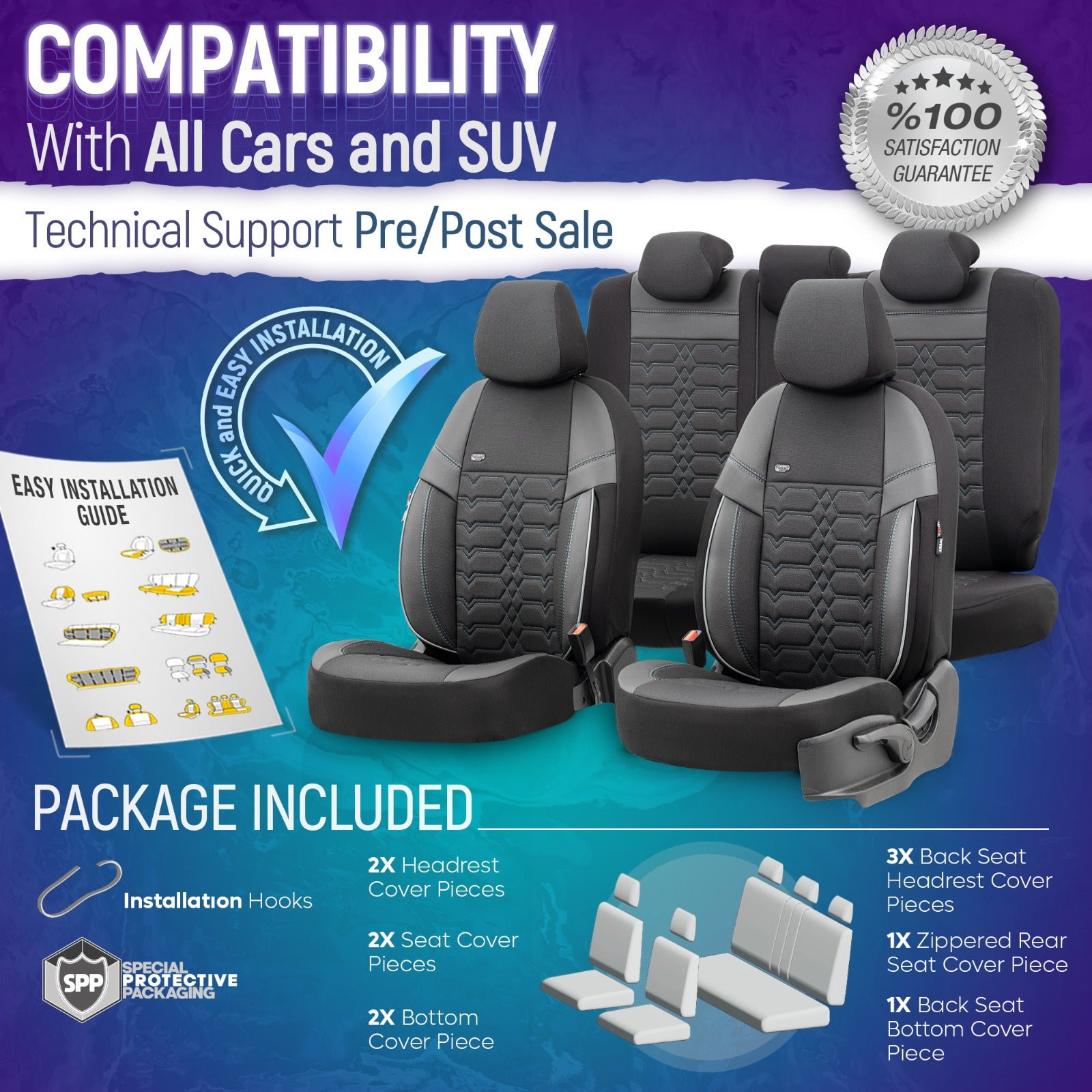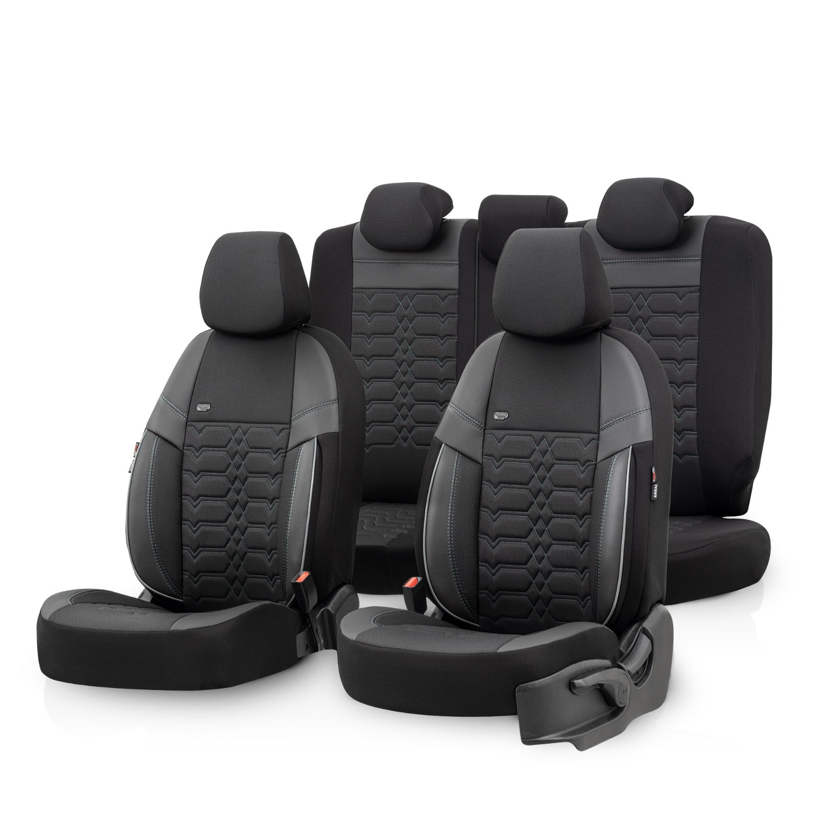 Sada čalounění Elegance – Černá s bílým prošitím, textil, pro přední a zadní sedadla